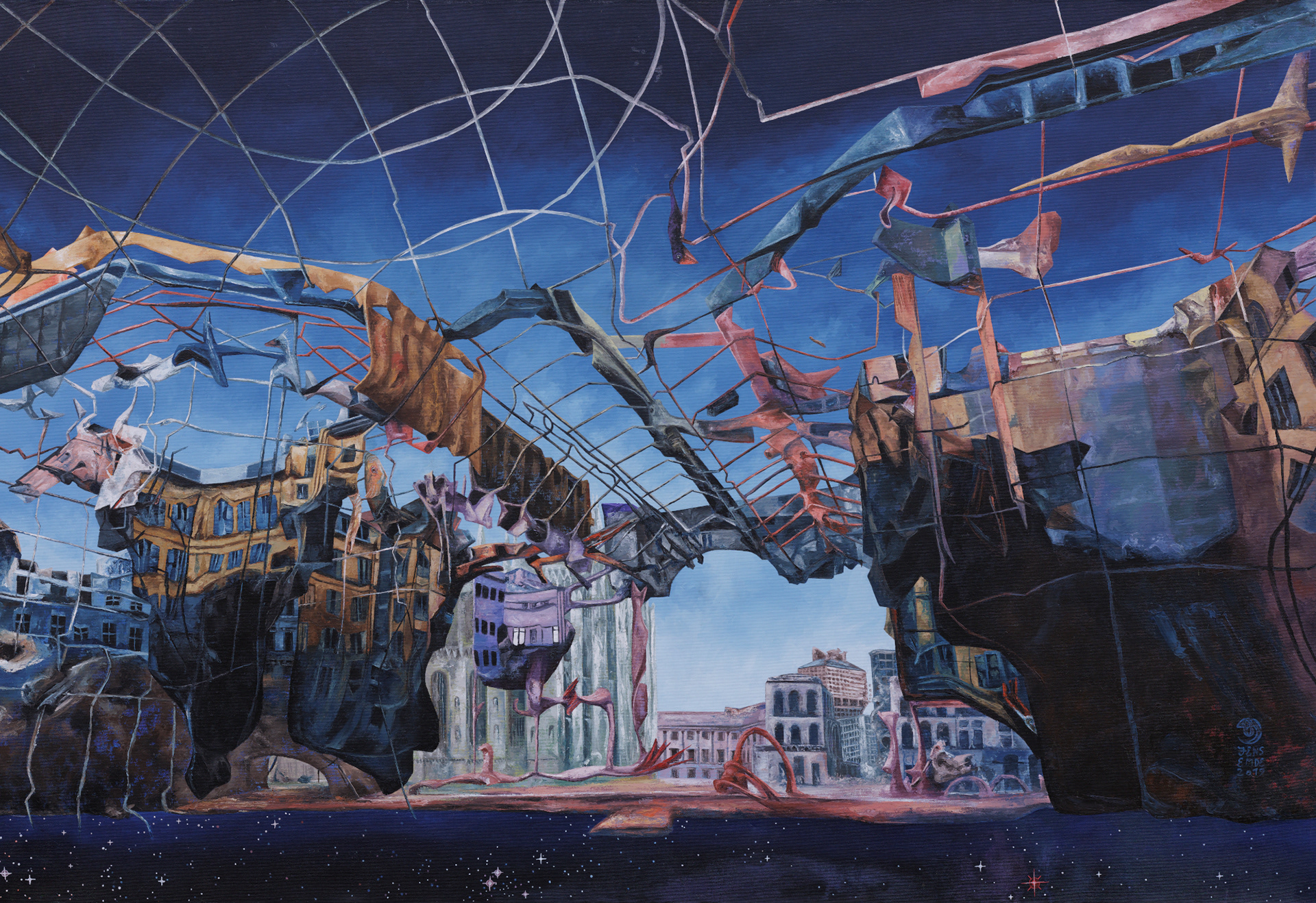 The artist´s current creative period is concerned with the possible expiration of humanity on earth and what may be thereafter. Especially the humans´ decadent consumerism, which systematically destroys the biosphere, bothers him as a nature lover. But finally the earth will outlast humanity and create the next geological era after anthropocene.